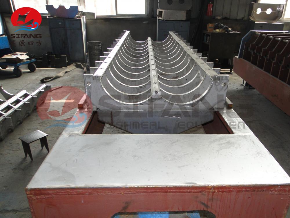 Ang mga tornilyo ay umiikot sa kabaligtaran ng mga direksyon, na pinipigilan ang materyal mula sa pag -ikot gamit ang mga turnilyo. Ang bawat seksyon ng shell ng strainer ay binubuo ng perforated hindi kinakalawang na asero plate na napapalibutan ng banayad na mga plate na sumusuporta sa bakal, na sinusuportahan ng mabibigat na tulay na bakal.